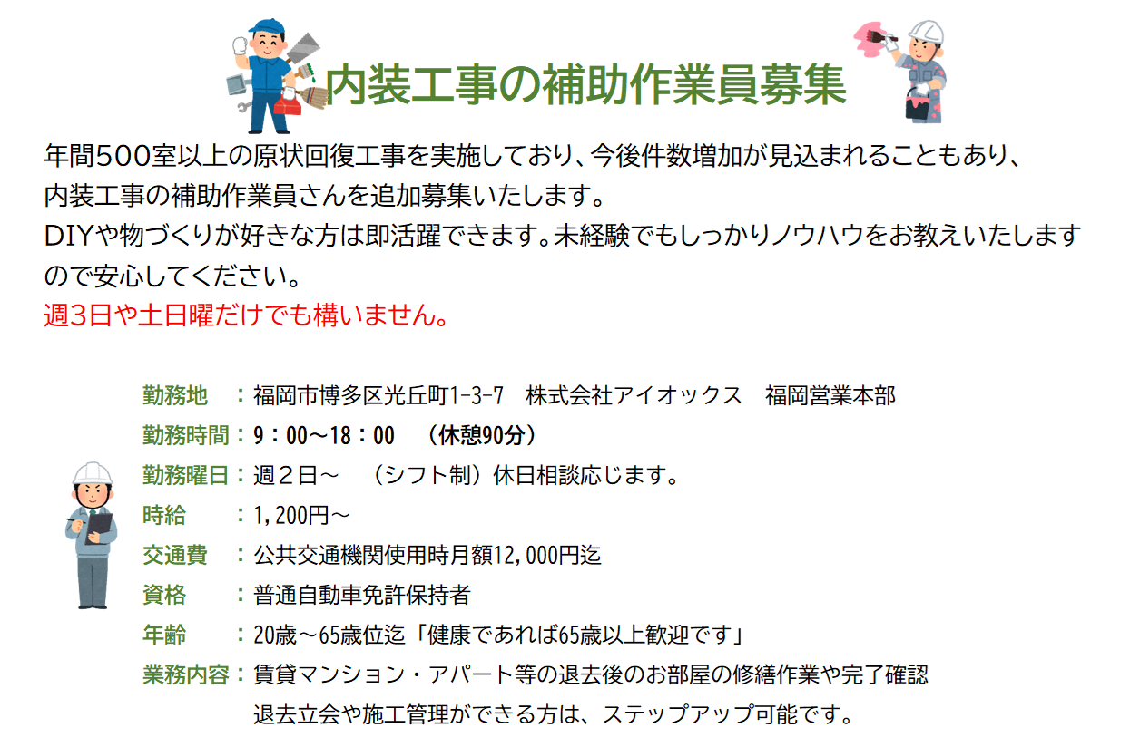(パート)賃貸物件の内装工事補助作業 2025.11.1